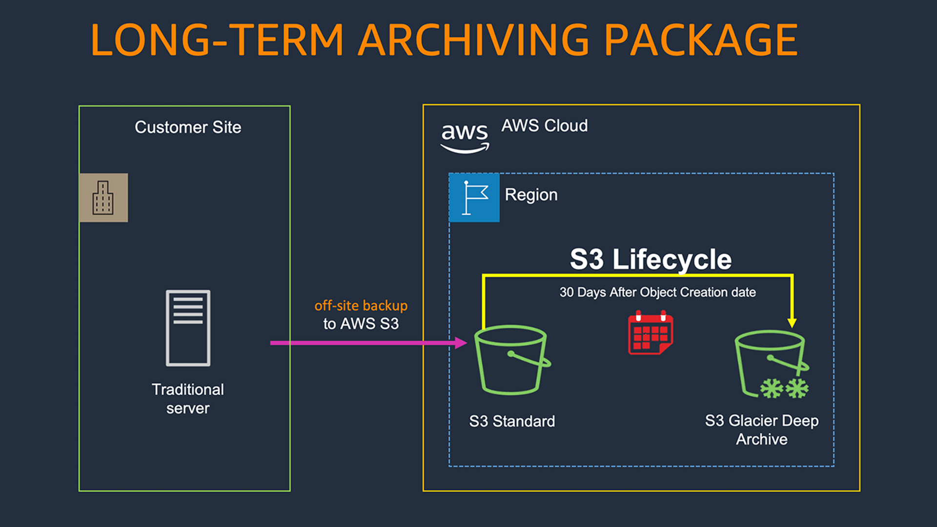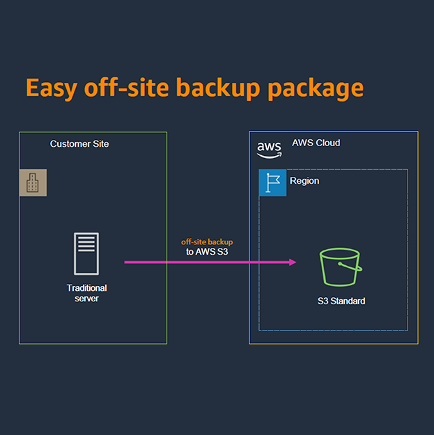 พื้นที่จัดเก็บข้อมูลบน AWS Cloud สำหรับการทำ off-site Backup หรือทำไซต์สำรองข้อมูลหากเกิดเหตุภัยพิบัติ (Disaster Recovery) รองรับการทำงานร่วมกับซอฟท์แวร์สำรองข้อมูลชั้นนำอย่าง Veeam และ Veritas ชำระค่าบริการตามการใช้งานจริงเป็นรายเดือน ไม่ต้องลงทุนในอุปกรณ์ มีผู้ดูแลระบบให้ตลอด 24x7 และยังสามารถดึงข้อมูลกลับไปใช้ได้ง่ายผ่าน Internet