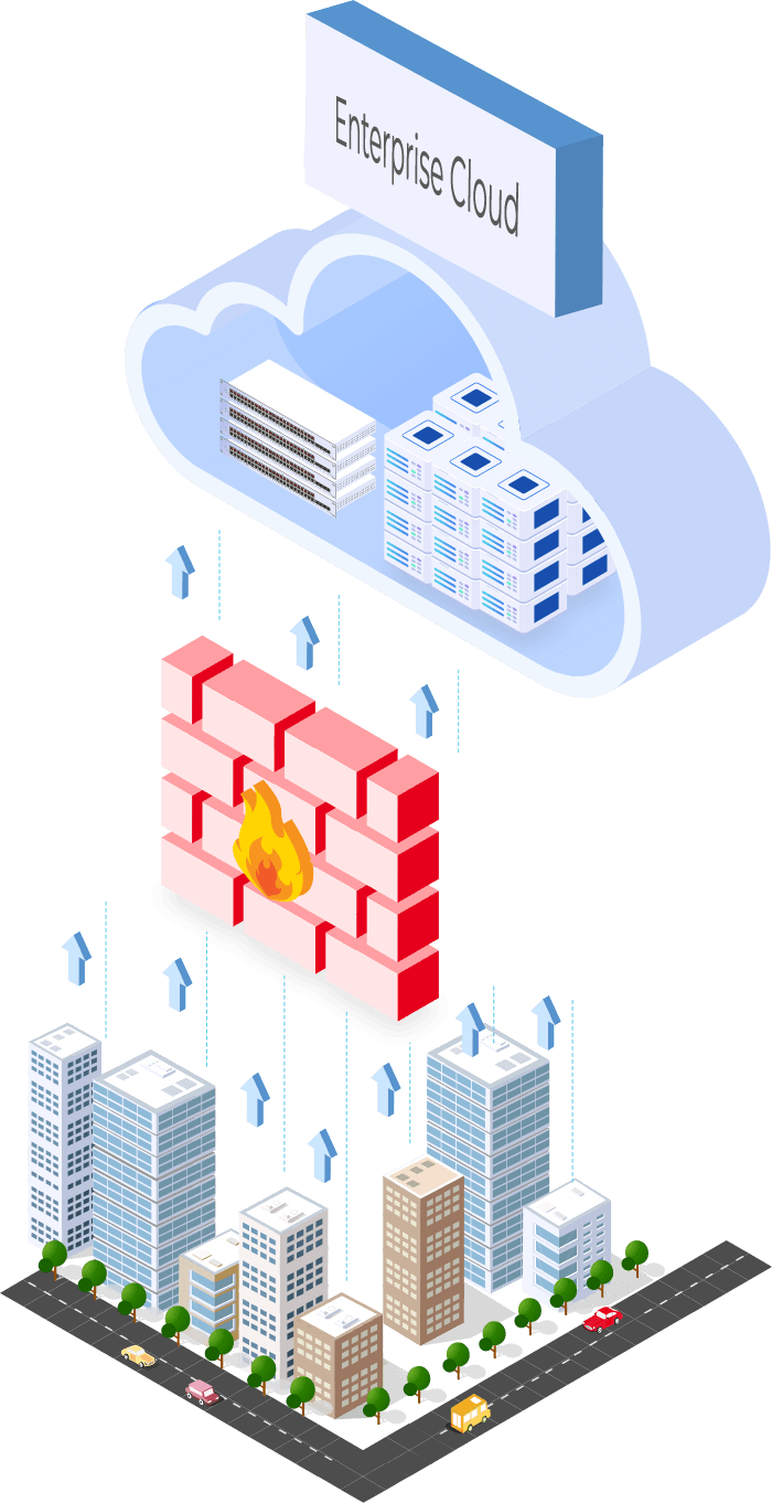 บริการ Enterprise Cloud อาศัยเทคโนโลยี VMware Cloud Platform ช่วยให้องค์กรมีศูนย์ข้อมูลเสมือนของตัวเอง (Virtual Private Cloud) และมีอุปกรณ์ที่จำเป็นสำหรับการใช้งานอย่างครบถ้วน ได้แก่ virtual network, server, storage และ firewall รวมถึงรองรับการใช้งานแบบ Hybrid cloud